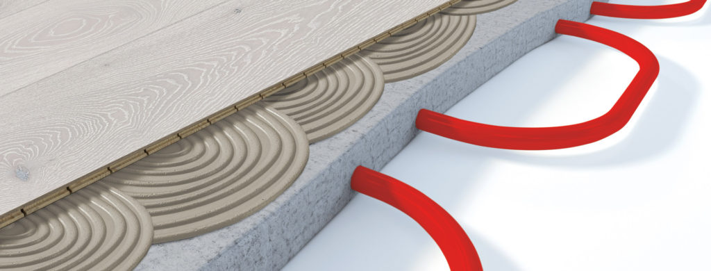 When using a glued floor, make sure that the applied glue retains its properties and flexibility, even when exposed to significant temperature fluctuations. The manufacturers of such glues provide special pictograms and information on the packaging that indicate, whether a particular type of glue can be applied on floor heating systems. Barlinek recommend having a parquet floor company carry out the gluing.