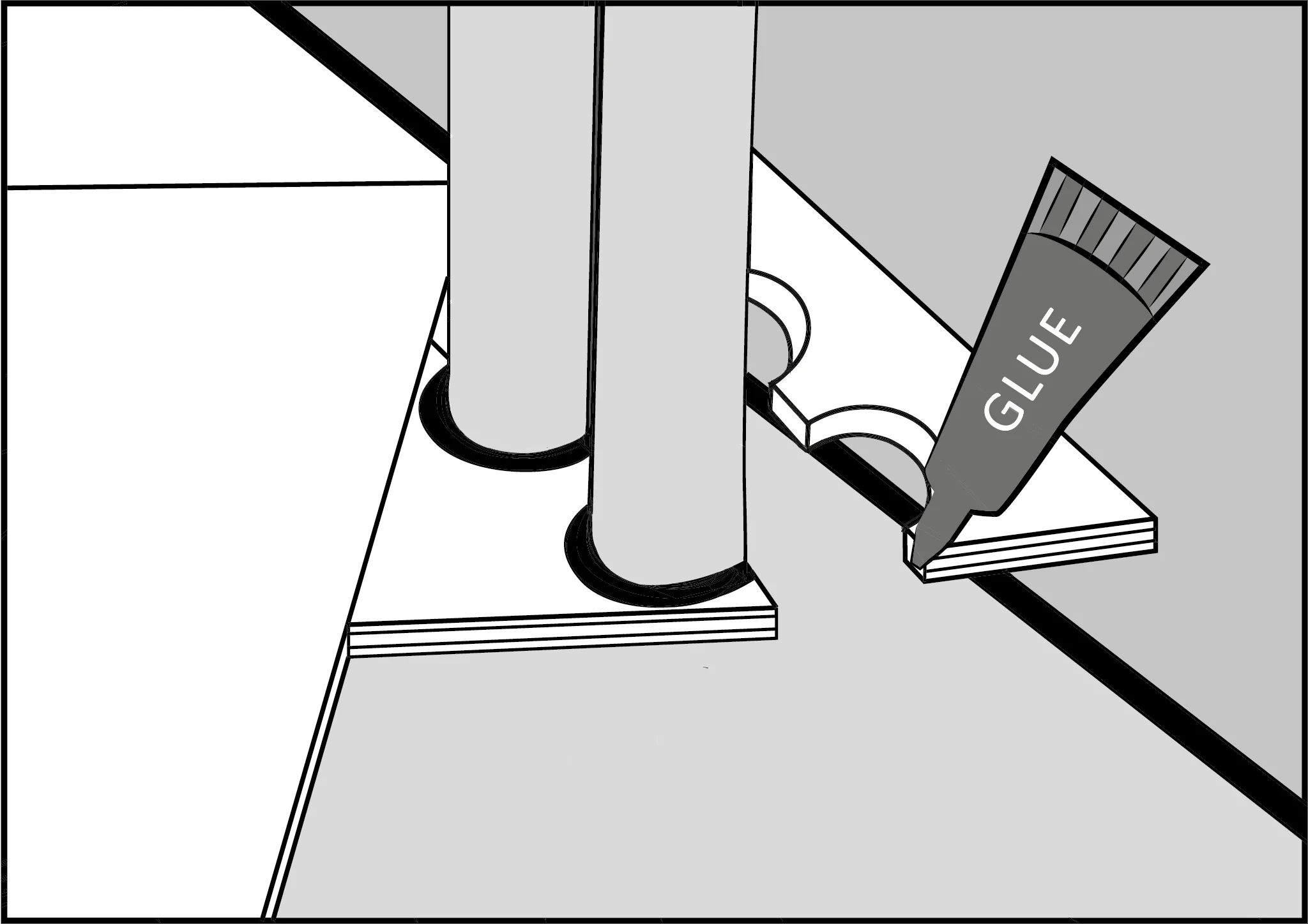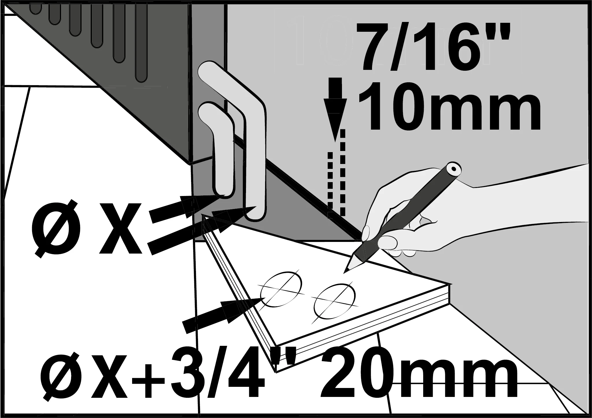 7. In case of pipes or other obstacles, cut out holes with a diameter increased by 3/4” (20 mm).
