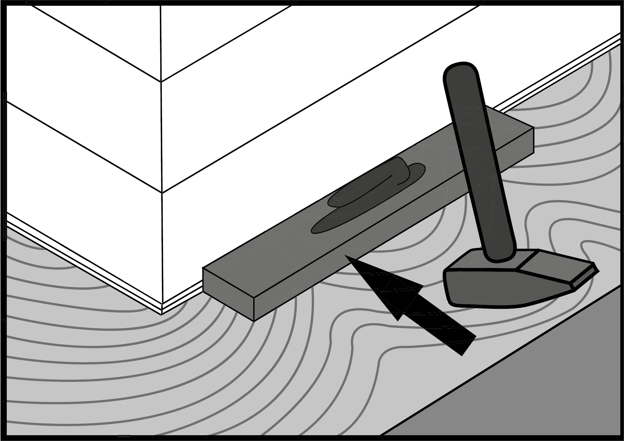 3. During the installation use a tapping block and a hammer to fit in the boards together along the longer edge. Adjust the tapping block along the entire longer edge of the board and tap it with hammer.