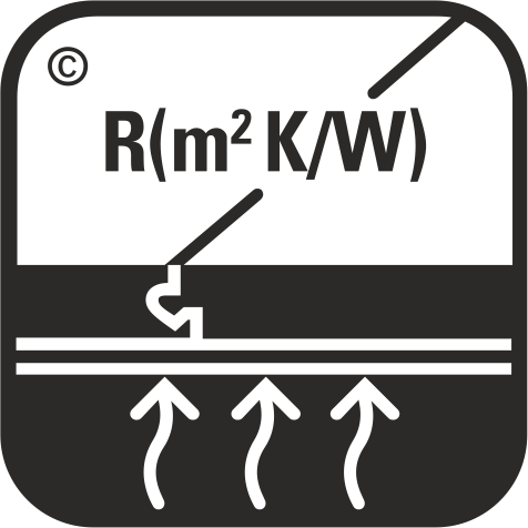 For underfloor heating systems: R ≤ 0,284 °Fft2h/Btu (0,05 m²K/W)