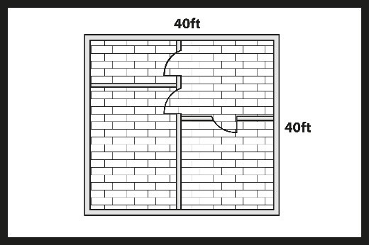 40 ft x 40 ft (12 m x 12 m).