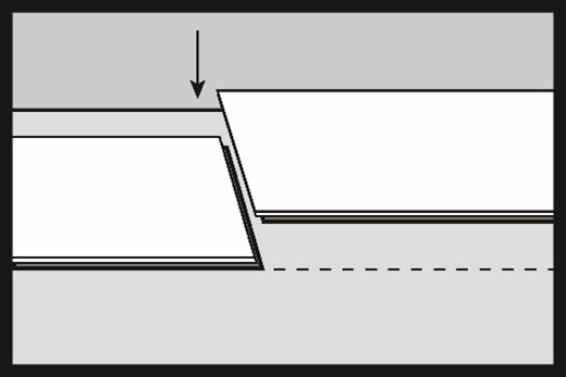 Tap the board on the long side with a tapping block. When installing hybrid boards, always tap the locks on the long side.