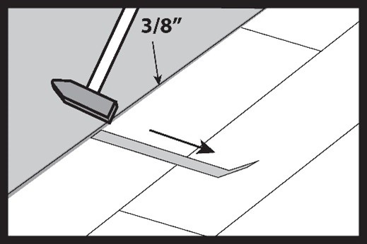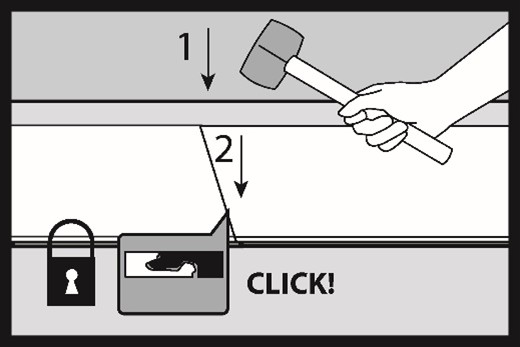 Tap the board on the long side with a mallet. When installing hybrid boards, always tap the locks on the long side