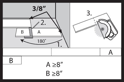 Use a hand saw, electric saw to cut the boards. When cutting the peripheral boards, remember to leave an expansion gap of at least 3/8’’ (10 mm). The recommended length of the peripheral board (A) in the first row of board should be at least 8’’ (203 mm). If the cut length of board (B) is longer than 8’’ (203 mm), you can use it to start laying the second row of boards. The distance between end-to-end joints in two adjacent rows of boards should be at least 8’’ (203 mm).