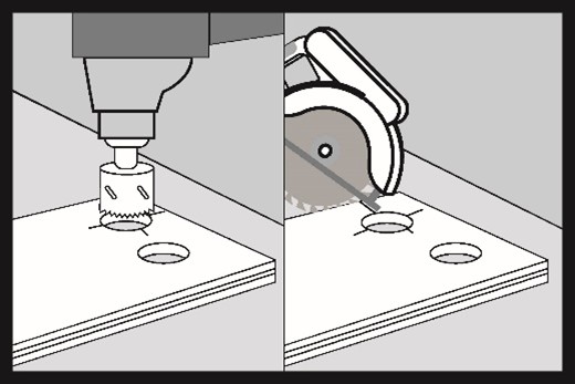 Draw holes for radiator pipes with a diameter larger by 25/32’’ (20 mm) than the diameter of the pipes on the SmartWood boards.