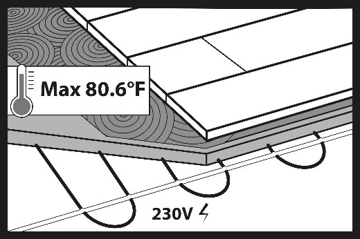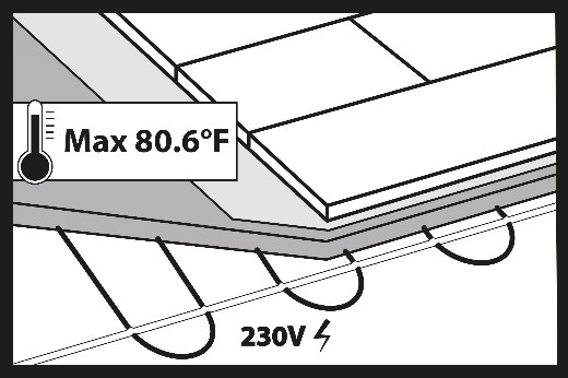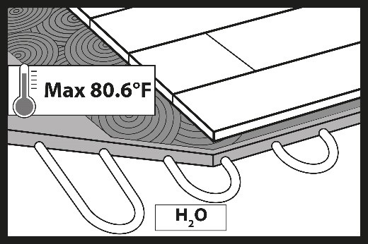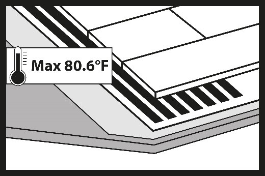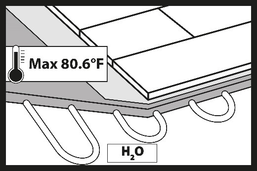 Do not start the heating system during installation. During the installation of hybrid floors, the underfloor heating system must be switched off and the surface temperature of the subfloor (screed) should be between +64.4°F (+18°C) and +75.2 °F (+24°C).