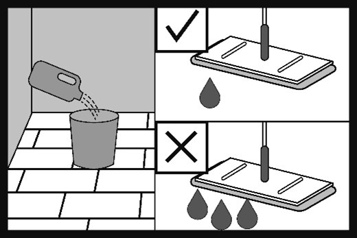 • You can use a damp cloth with or without the recommended floor care product. Do not leave wet marks on the floor after cleaning.