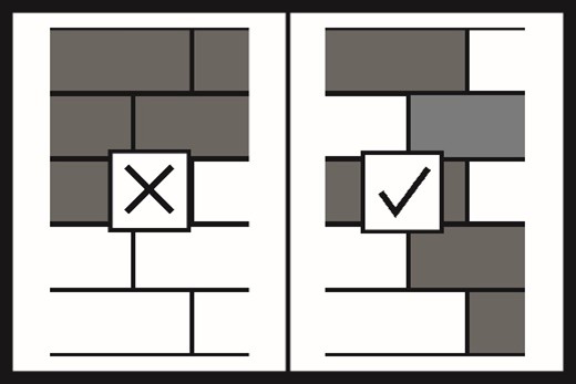 Cross joints in adjacent floor strips are unacceptable.