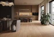 An oak floor in a deep brown shade impresses with elegance and a distinctive style. The intense color highlights the natural grain, giving the interior a sense of sophistication and exceptional depth.